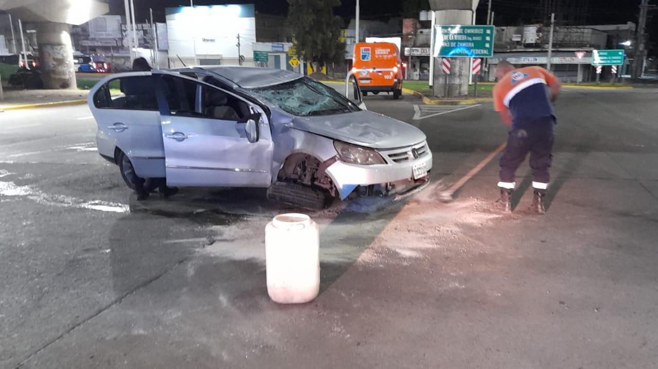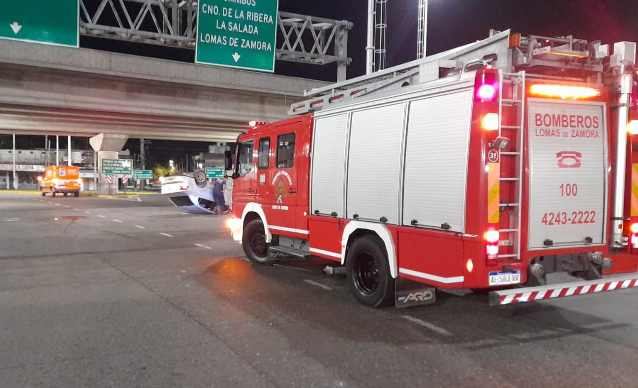 El accidente ocurrió en la noche del domingo en la rotonda ubicada debajo del puente, sobre Camino Juan Domingo Perón -ex Camino Negro-, a metros de la terminal de colectivos de La Noria. Por causas que se investigan, un Volkswagen Voyage gris perdió el control, chocó contra el cordón y terminó volcando. No se registró la participación de otro vehículo.