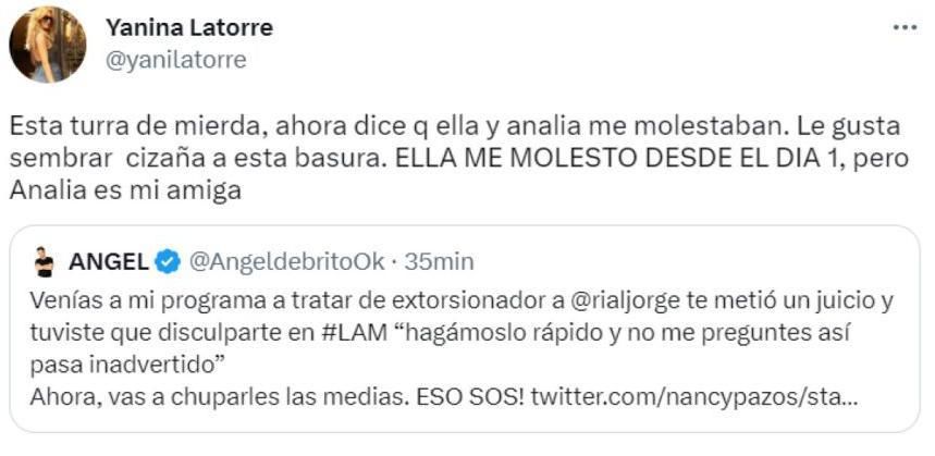 Yanina Latorre fulminó a Nancy Pazos en medio del cruce que la periodista mantuvo con Ángel de Brito, fruto de una vieja interna de "LAM".