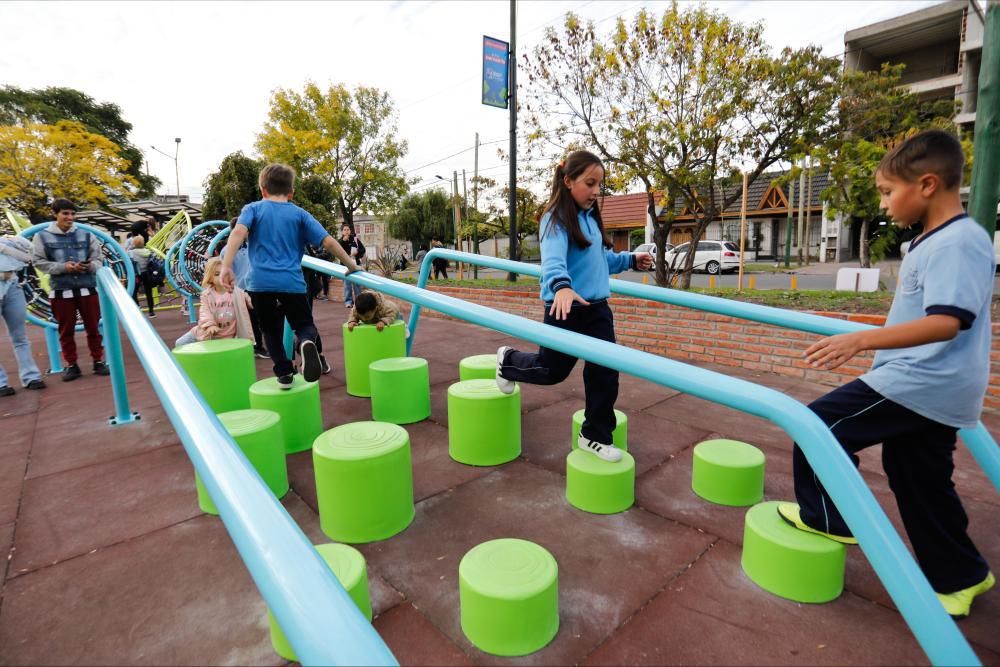 "Uno de los juegos es el barco ARA General Belgrano en homenaje a los caídos en Malvinas. La plaza, que es muy concurrida por las escuelas de la zona, es una de las más bonitas que hicimos y tiene todo el perímetro con veredas nuevas y un sistema de riego por aspersión", destacó el titular del Imptce, Fernando Giordano.