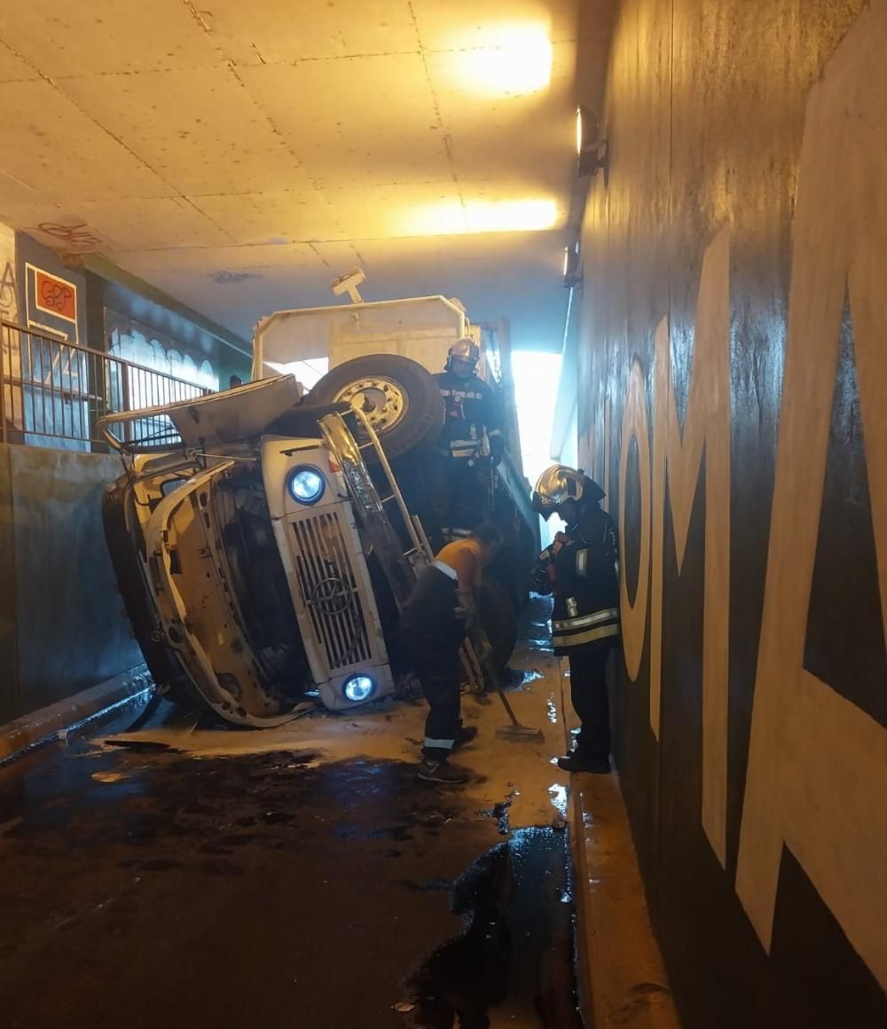 Ya está habilitada la circulación por el bajo nivel que conecta las calles Antonio Sáenz y Lamadrid tras el vuelco de un camión que perdió el control ayer por la tarde.