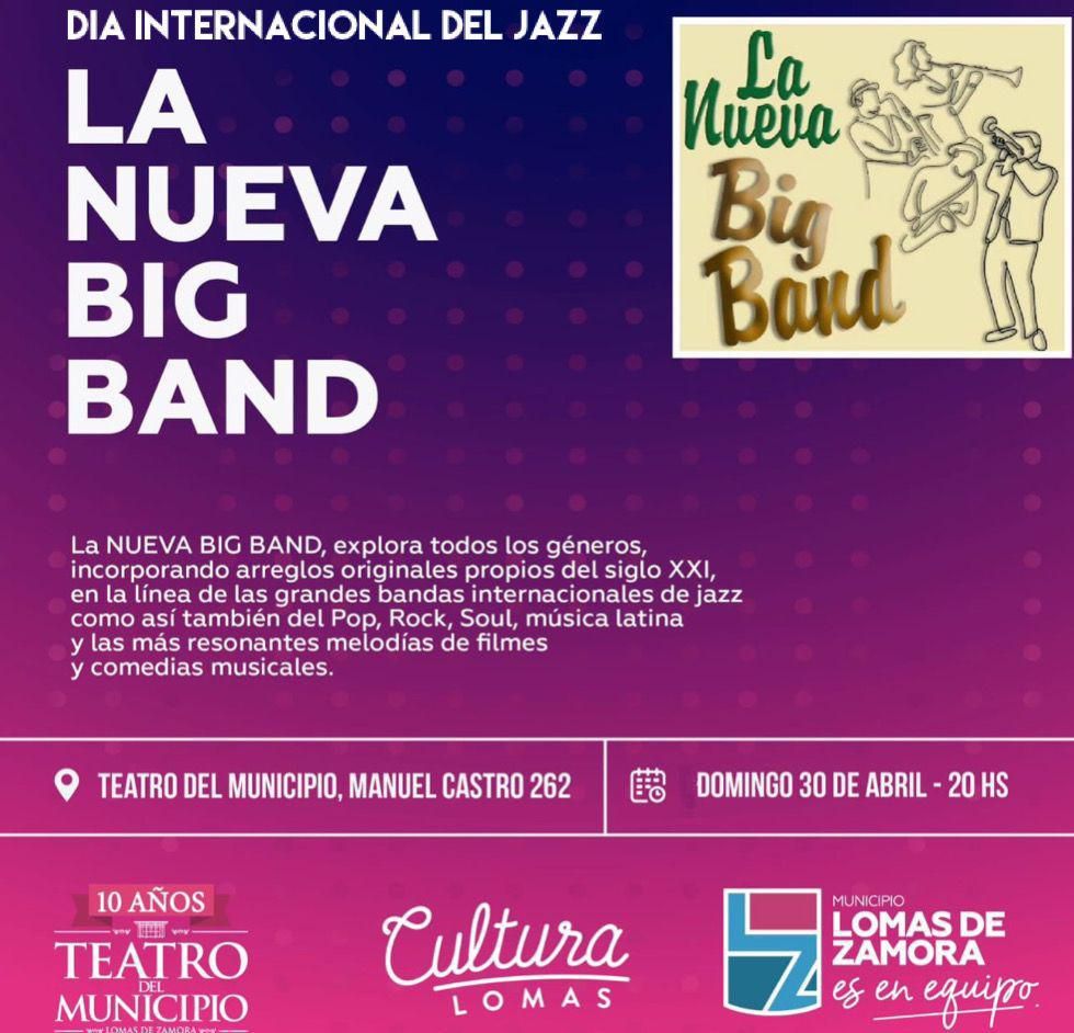 La Nueva Big Band saldrá a escena este domingo en el Teatro del Municipio de Lomas para celebrar el Día Internacional del Jazz con un repertorio que transitará por los clásicos del género.
