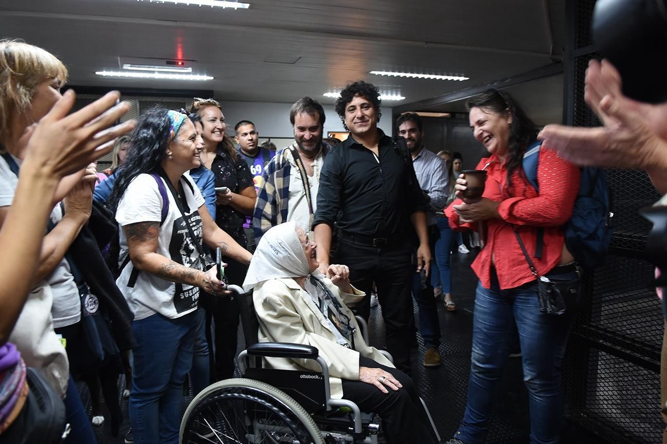 Nora Cortiñas, confundadora de Madres de Plaza de Mayo, fue nuevamente a apoyar a Marcos Bazán a los Tribunales de Lomas de Zamora y se dio un emotivo abrazo con él luego de que lo absolvieran por el femicidio de Anahí Benítez.