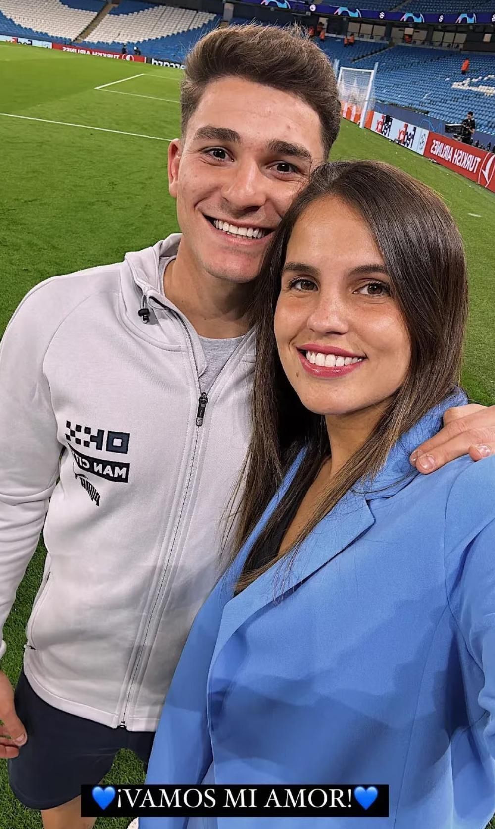 "Vamos mi amor", escribió la cordobesa con emojis de corazones azules en la previa del encuentro.