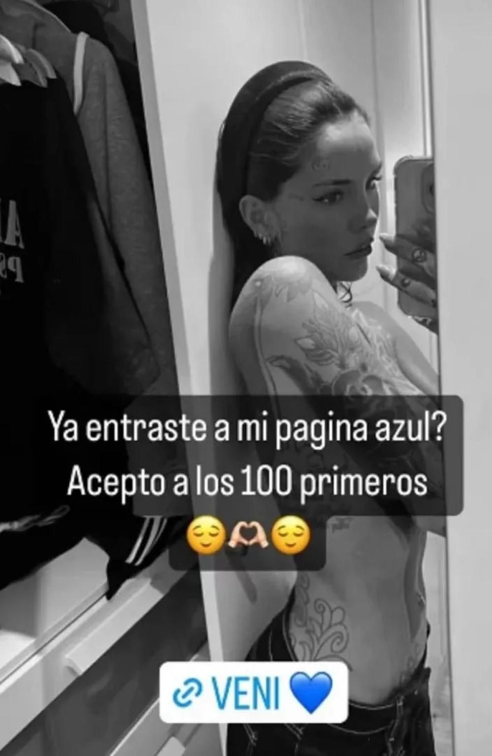 "¿Ya entraste a mi página azul? Acepto a los 100 primeros", escribió la hija de Marce en una historia y dejó un link para que los usuarios se dirijan hacia su perfil de Telegram.