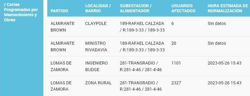 Cabe aclarar que 3.428 usuarios están sin luz debido a cortes programados por mantenimiento y obras, pero el resto -la gran mayoría- no tiene servicio pura y exclusivamente por los daños que provocó el temporal.