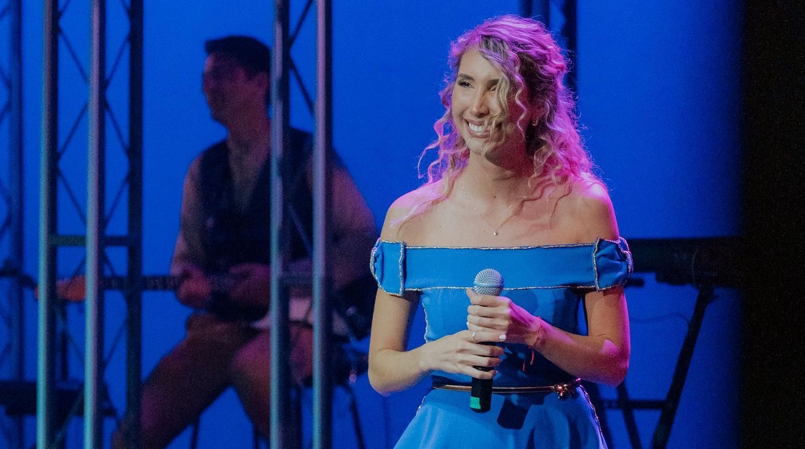 La artista "argentina-ecuatoriana" se luce con su voz en el espectáculo que encabeza el lomense en el Teatro Astral.