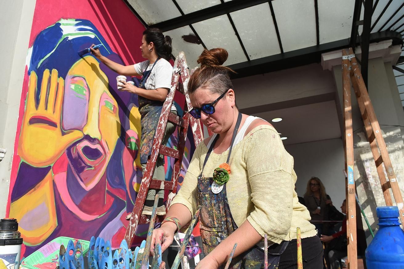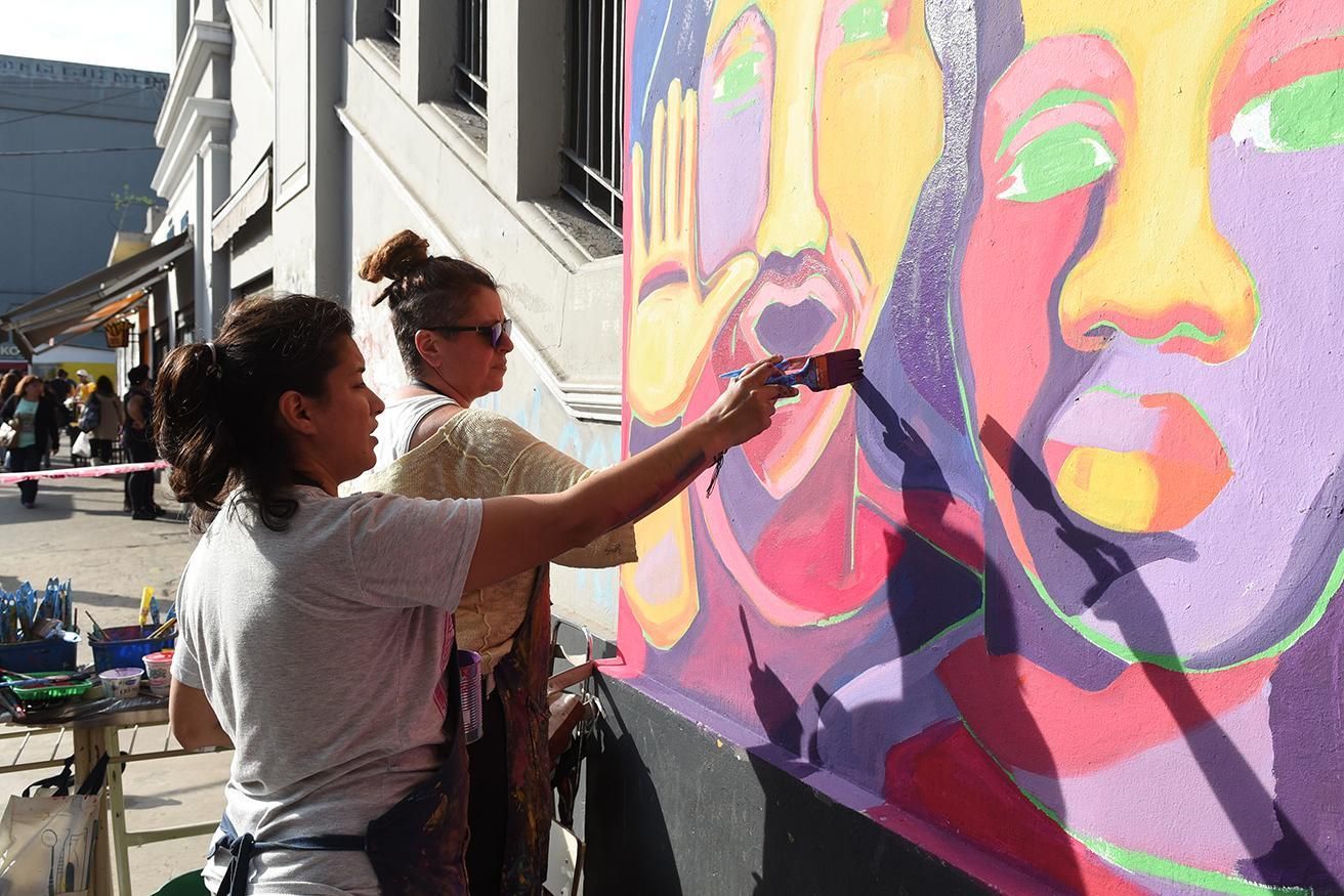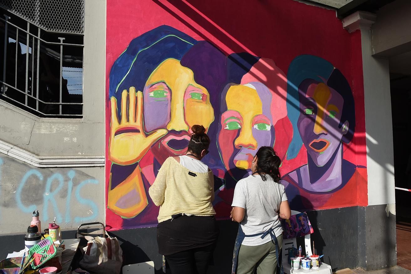 Mientras que al mediodía comenzó la pintura del mural a cargo de las artistas Victoria Guggiari y Ximena Lafuente, que llevaron a cabo la obra en una de las paredes de la estación ubicada sobre la calles República Árabe de Siria y Laprida. "El objetivo es visibilizar el Ni Una Menos en un lugar tan popular y neurálgico como la estación, donde la mayoría de la gente trabajadora pasa habitualmente. También es una manera de meterte en el tema e interpelarte aunque vos no quieras", señaló Victoria, quien agregó: "Es un desafío enorme y a la vez un orgullo que nos toque una pared de una estación que tiene tanta visibilidad".