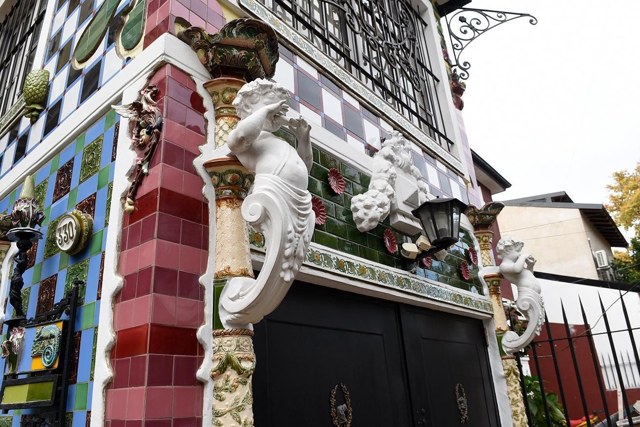 Las paredes del frente de su hogar e incluso las rejas cuentan con mayólicas que le dan una impronta de reciclado y de revalorización al espacio.
