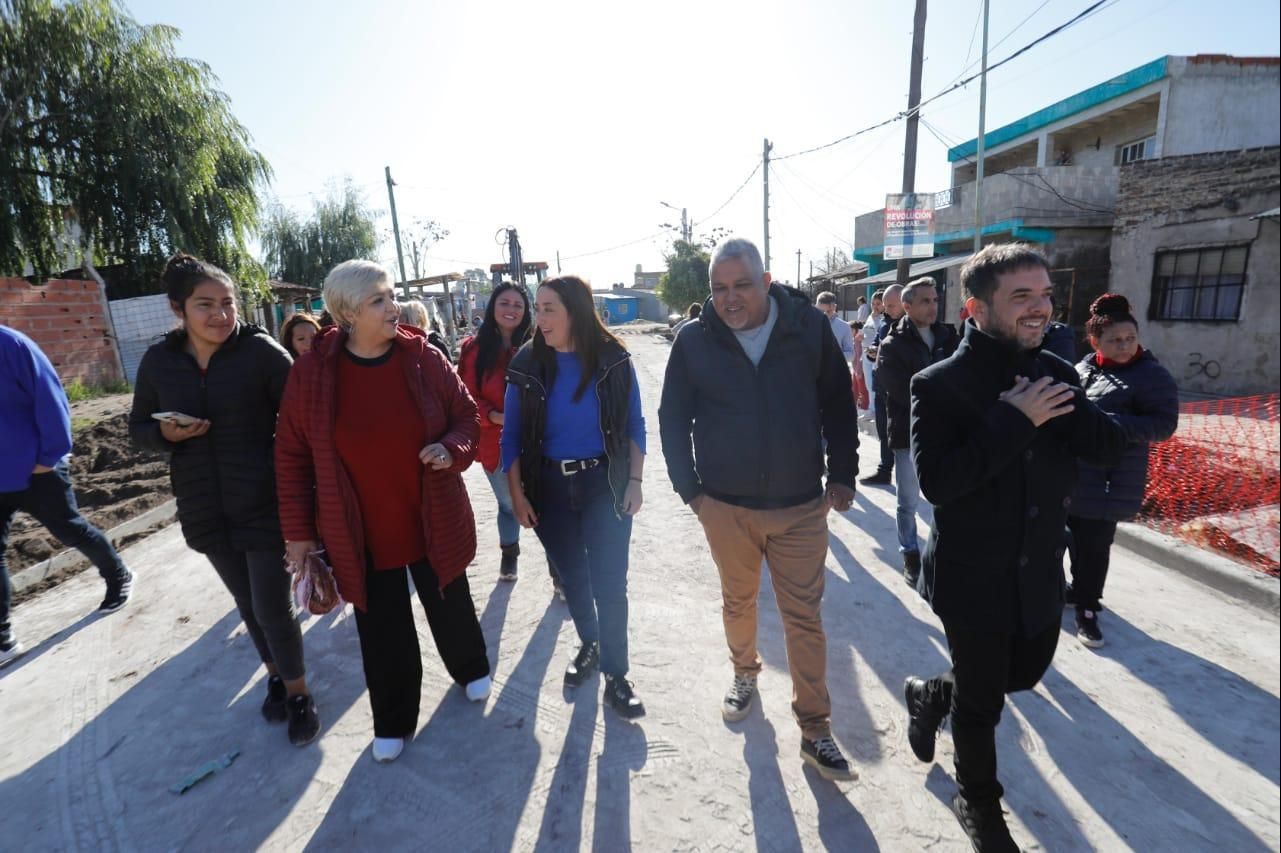 En la recorrida por el barrio participaron el secretario de Obras y Servicios Públicos, Emiliano Piergiovanni, y el delegado de Fiorito, Walter Salguero. Los vecinos celebraron el avance de las obras para terminar con las calles de tierra.