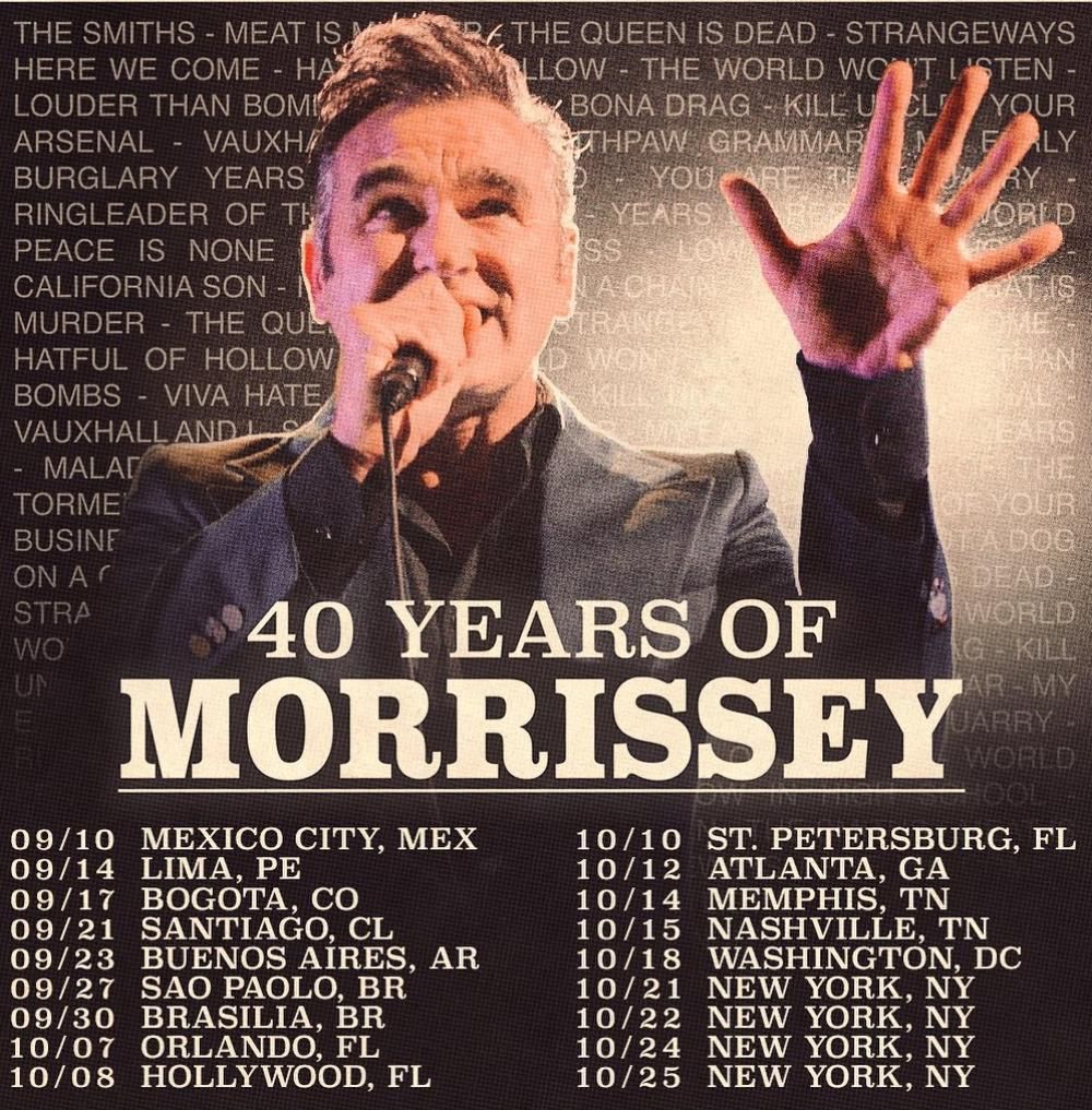 La visita del excantante de The Smiths se enmarca en el 40 aniversario de su vínculo profesional con la música, cuando junto a Johnny Marr compusieron el disco "The Smiths", álbum editado en 1984.