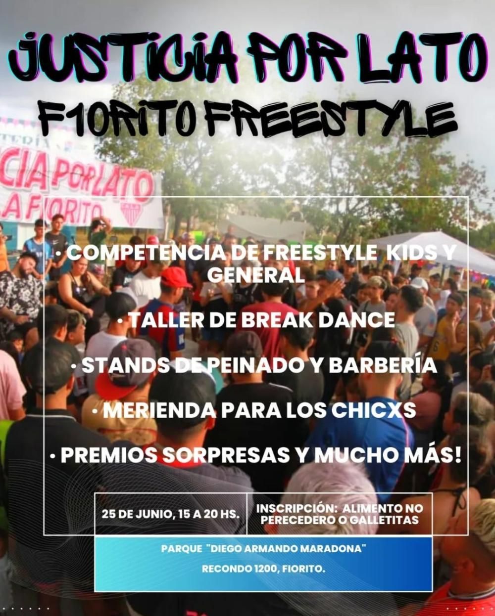 "A raíz de la primera convocatoria y del impacto que tuvo, del gran alcance, el Municipio declaró de Interés Municipal a la competencia Fiorito Freestyle Justicia por Lato, por eso se va a seguir haciendo", había señalado a La Unión su hermana, Florencia Leandro, acerca de la actividad.