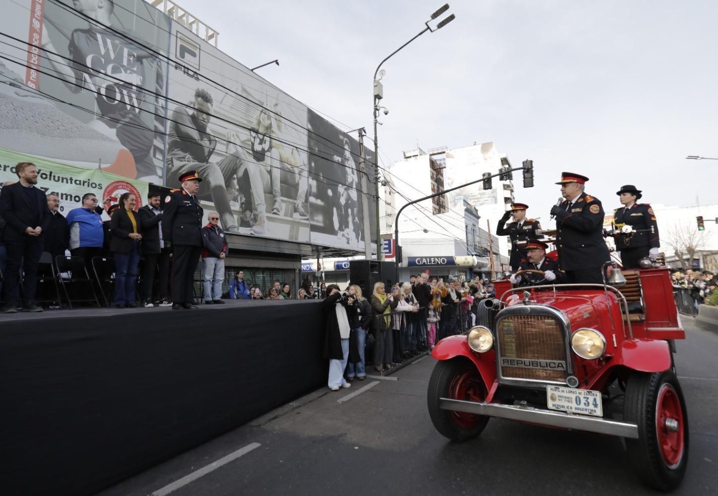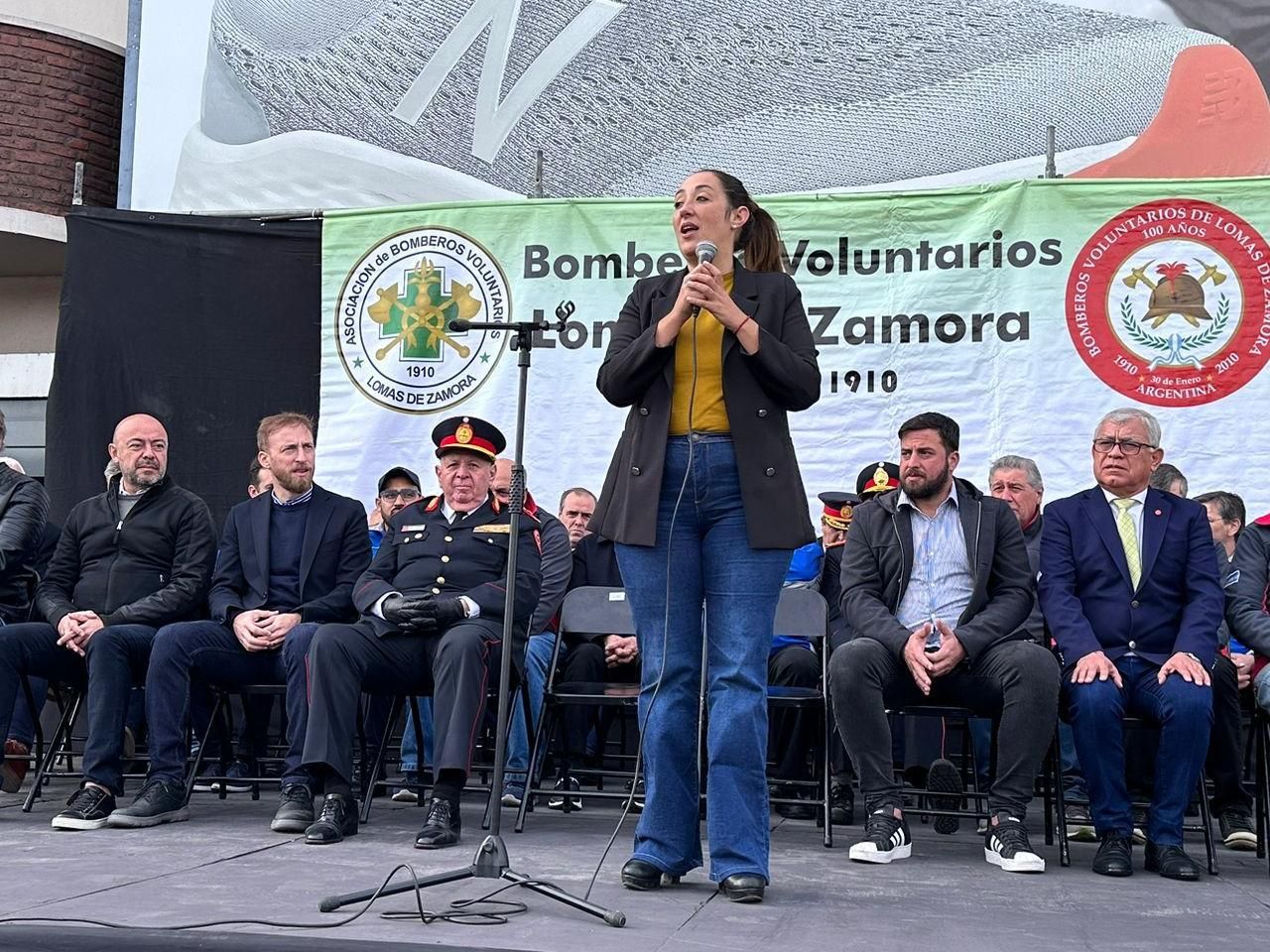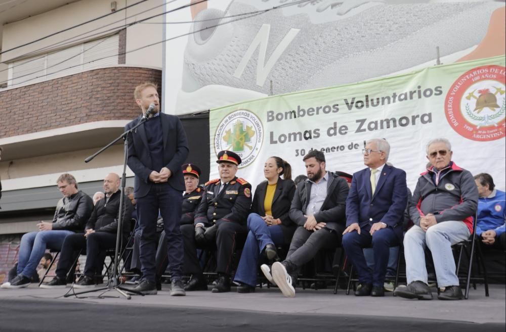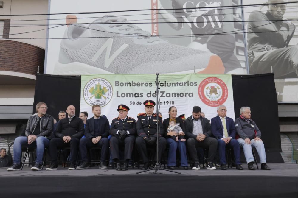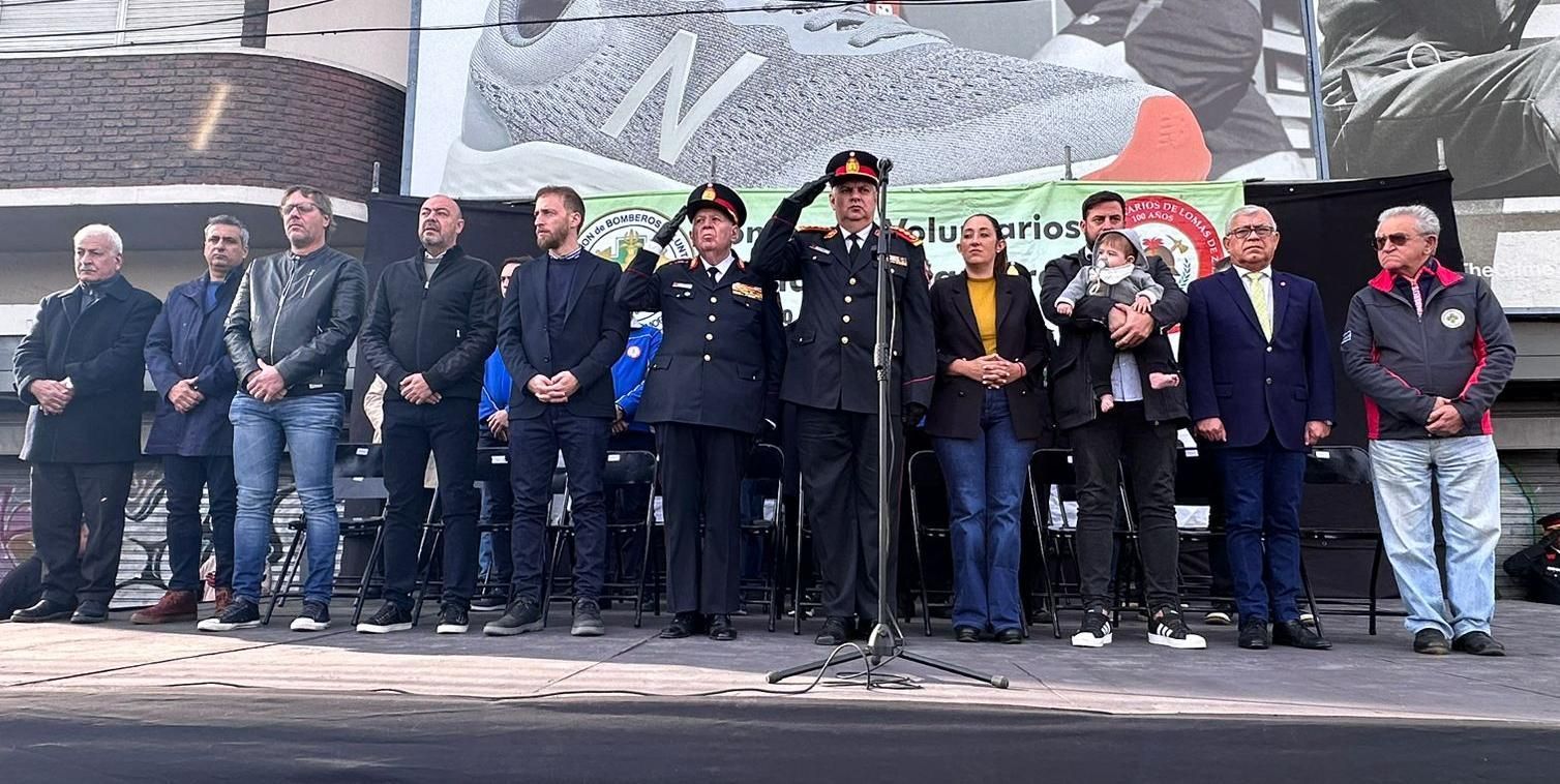 Estuvieron presentes en el escenario, que también se instaló sobre la avenida, la intendenta Marina Lesci; el presidente de la Cámara de Diputados de la Provincia de Buenos Aires y candidato a intendente de Lomas, Federico Otermín; el presidente de los Bomberos de Argentina, Carlos Alfonso; y el presidente de los Bomberos Voluntarios de Lomas y de la Federación Bonaerense de Bomberos Voluntarios, comandante General Daniel Vicente.