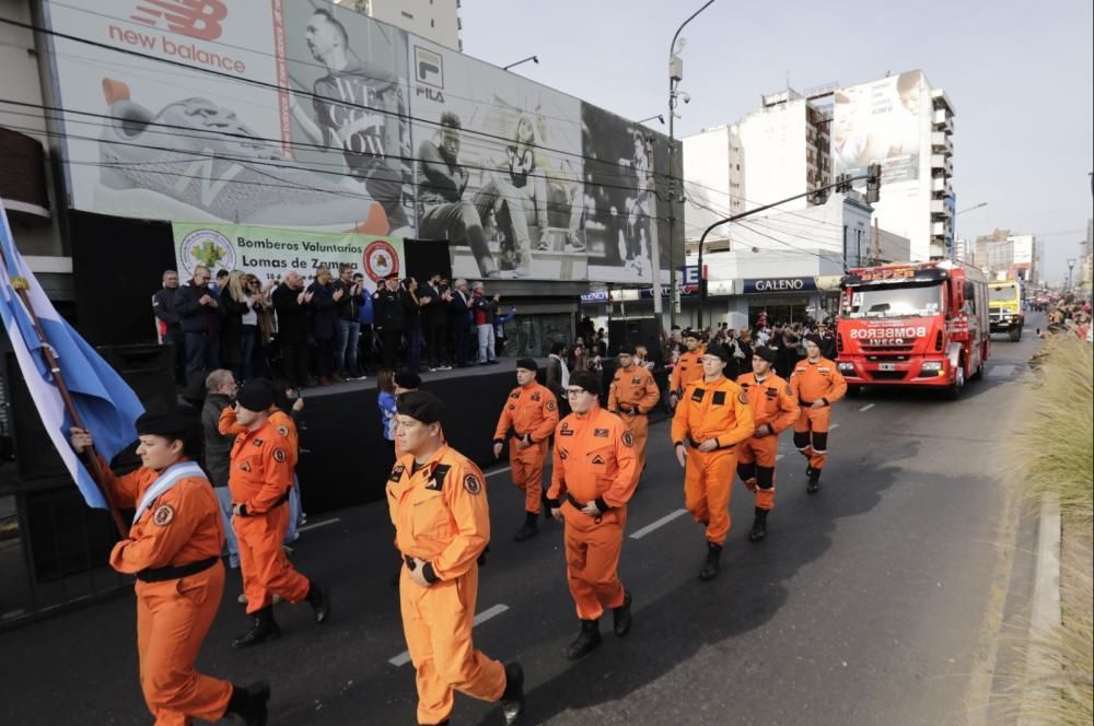 Este domingo se realizó un desfile para honrar a los bomberos voluntarios de todas las localidades, sobre la avenida Hipólito Yrigoyen, entre Gorriti y Pereyra Lucena. Estuvo organizado por la Asociación de Bomberos Voluntarios de Lomas.