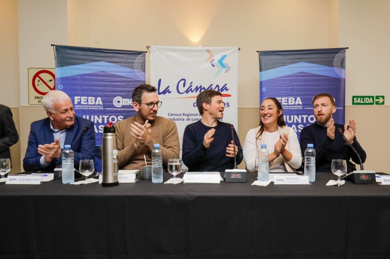 El encuentro también contó con la presencia del ministro de Producción, Ciencia e Innovación Tecnológica de la Provincia, Augusto Costa; el presidente del Banco Provincia, Juan Cuattromo; y el presidente de la Cámara de Comercio de Lomas y titular de la Federación Económica de Buenos Aires (FEBA), Alberto Kahale.