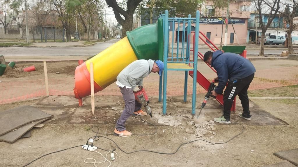 El Municipio comenzó con el desmonte de la Plaza 1º de octubre. Como muchos otros espacios verdes, tendrá nuevos juegos, canchas y sectores de descanso.