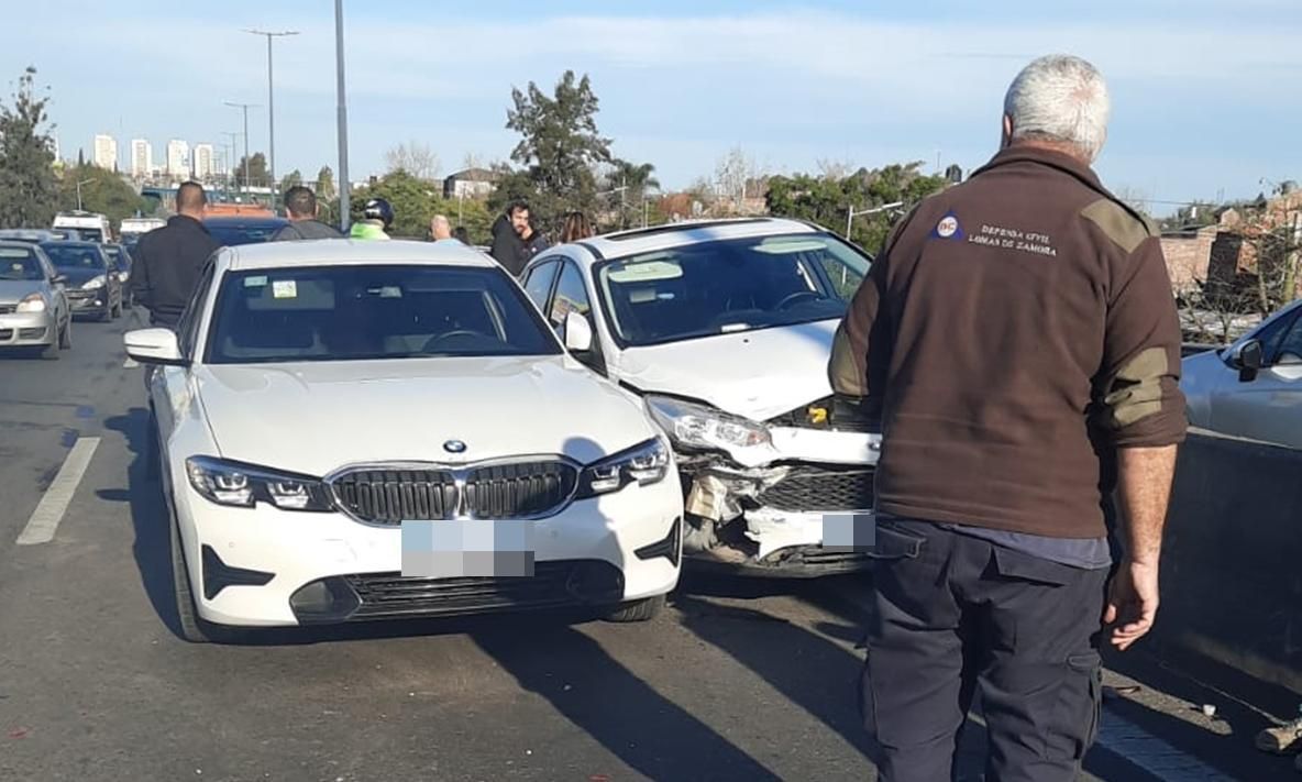 El accidente ocurrió este viernes por la tarde sobre la autopista a la altura de la calle Virgen de Itatí. Involucró a un BMW 330i color blanco, un Ford Focus blanco, un Toyota Innova Negro y un Renault Logan gris.