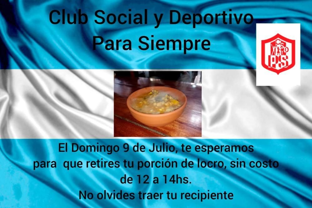 El Club Social y Deportivo Para Siempre de Banfield se prepara para festejar el Día de la Independencia bien cerca de los vecinos: el domingo por la mañana repartirán porciones de locro de forma gratuita en forma de agradecimiento por todo el acompañamiento que los lomenses realizan día a día con la institución.