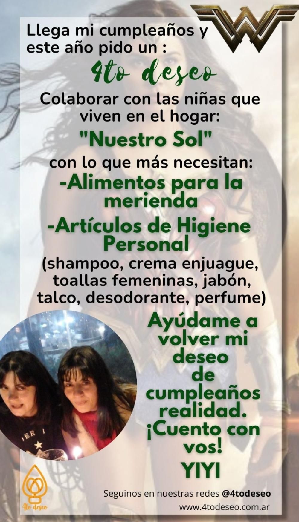 Con mucha empatía y compromiso, la vecina Graciela Pilar Pinilla decidió no pedir regalos para su cumpleaños y optó por pedir donaciones y así sumarse a la iniciativa que propone la ONG 4to Deseo.