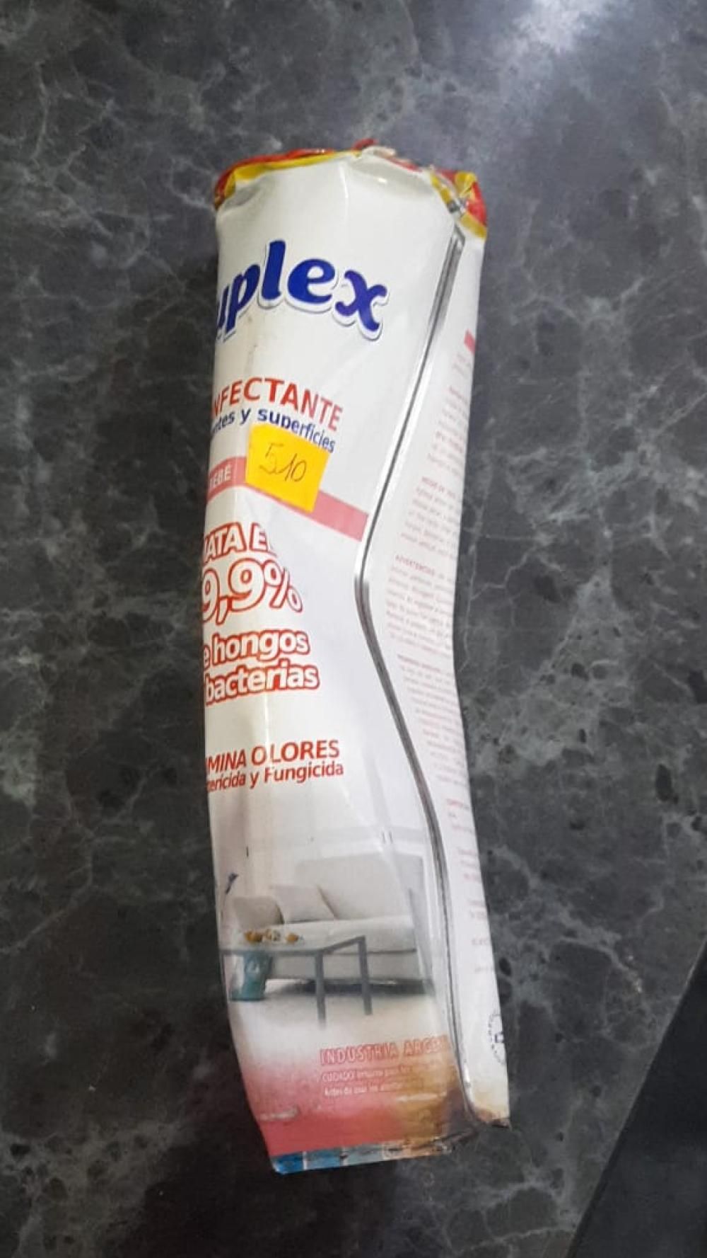 Allí, encontraron el envase de un desodorante de ambiente, que estaba desfondado y tenía abolladuras, producto del impresionante impacto.