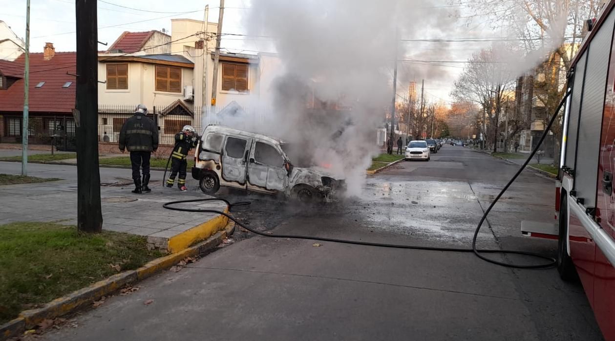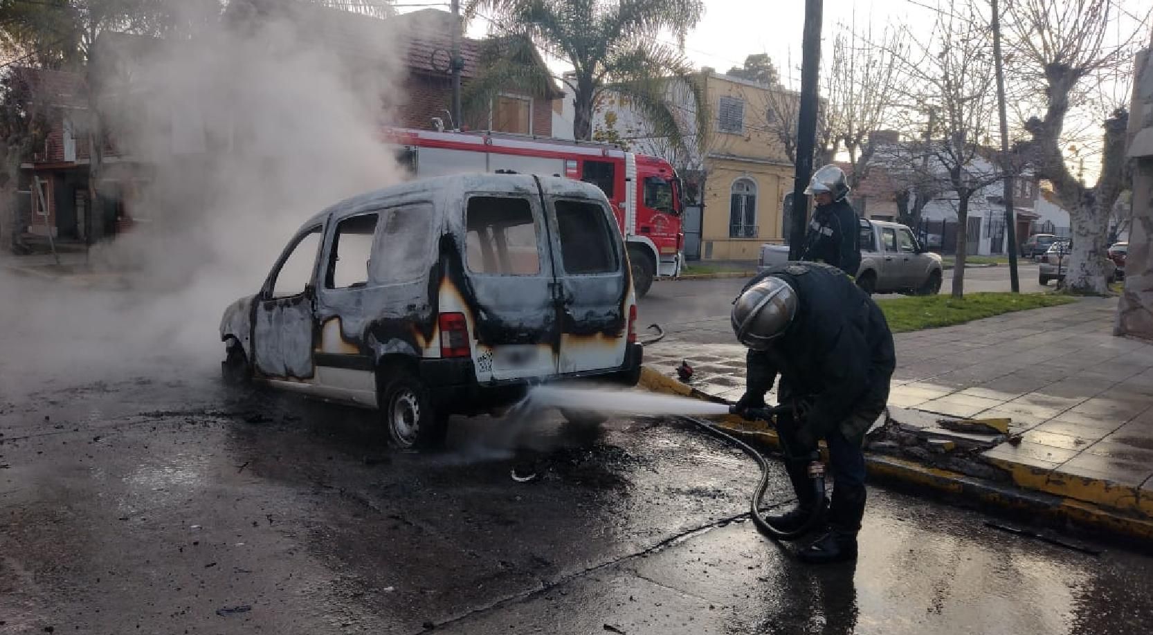 Todo ocurrió alrededor de las 8 en la esquina de las calles Sarandí y Salguero, a dos cuadras del Hospital Gandulfo. La tranquilidad matutina se interrumpió cuando una camioneta Peugeot Partner color blanca que pasaba por el lugar quedó envuelta en llamas.