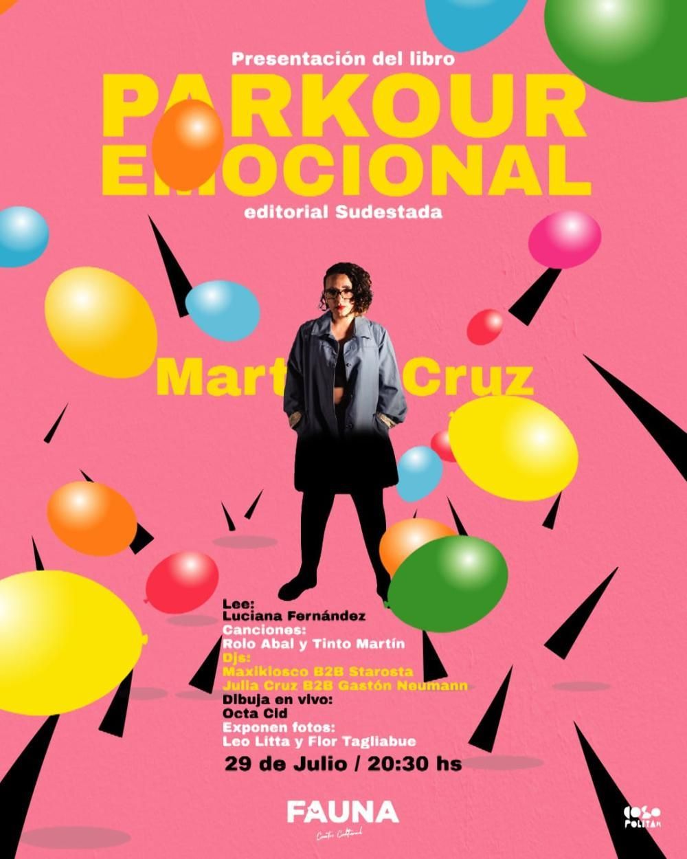 La poeta lomense Martina Cruz (26) presentará mañana su libro llamado "Parkour emocional" en un evento que se llevará a cabo desde las 20.30 en Fauna Centro Cultural (Adolfo Alsina 108, Banfield). El texto, de 127 páginas, reúne los primeros cuatro poemarios de la joven escritora local, el cual intenta "dar aliento y esperanza a las personas que lo lean".