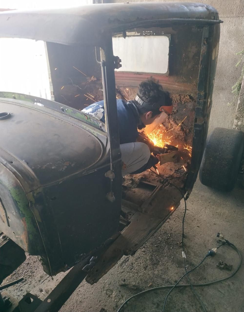 Para convertir este Ford A de antaño en un Rat-Rot, Ezequiel comenzó con la quita del chasis del auto original, le sacó los rastros de madera que tenían las puertas y cabina dejó solo la chapa. Una vez estaba eso, soldó el tren delantero del Taunus al chasis, después tomó las medidas de las "patas" de motor debido a que debían ir más atrás y se adaptó la cabina a la posición del motor.