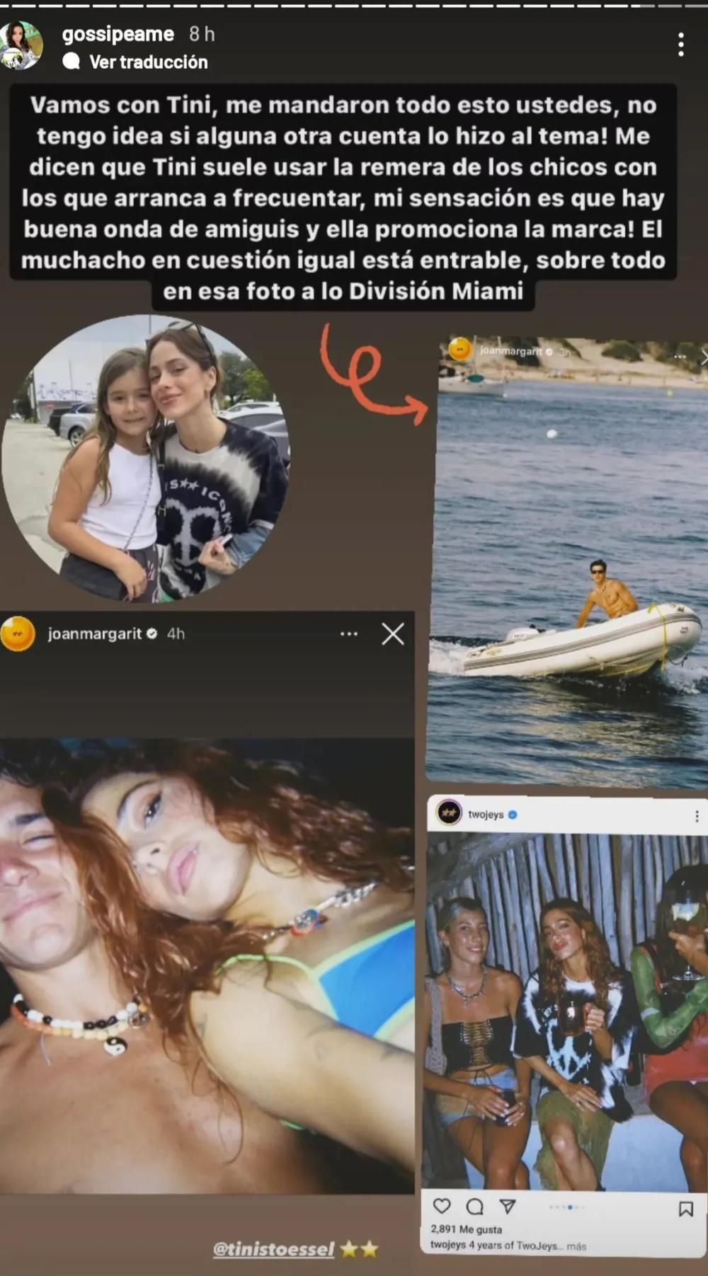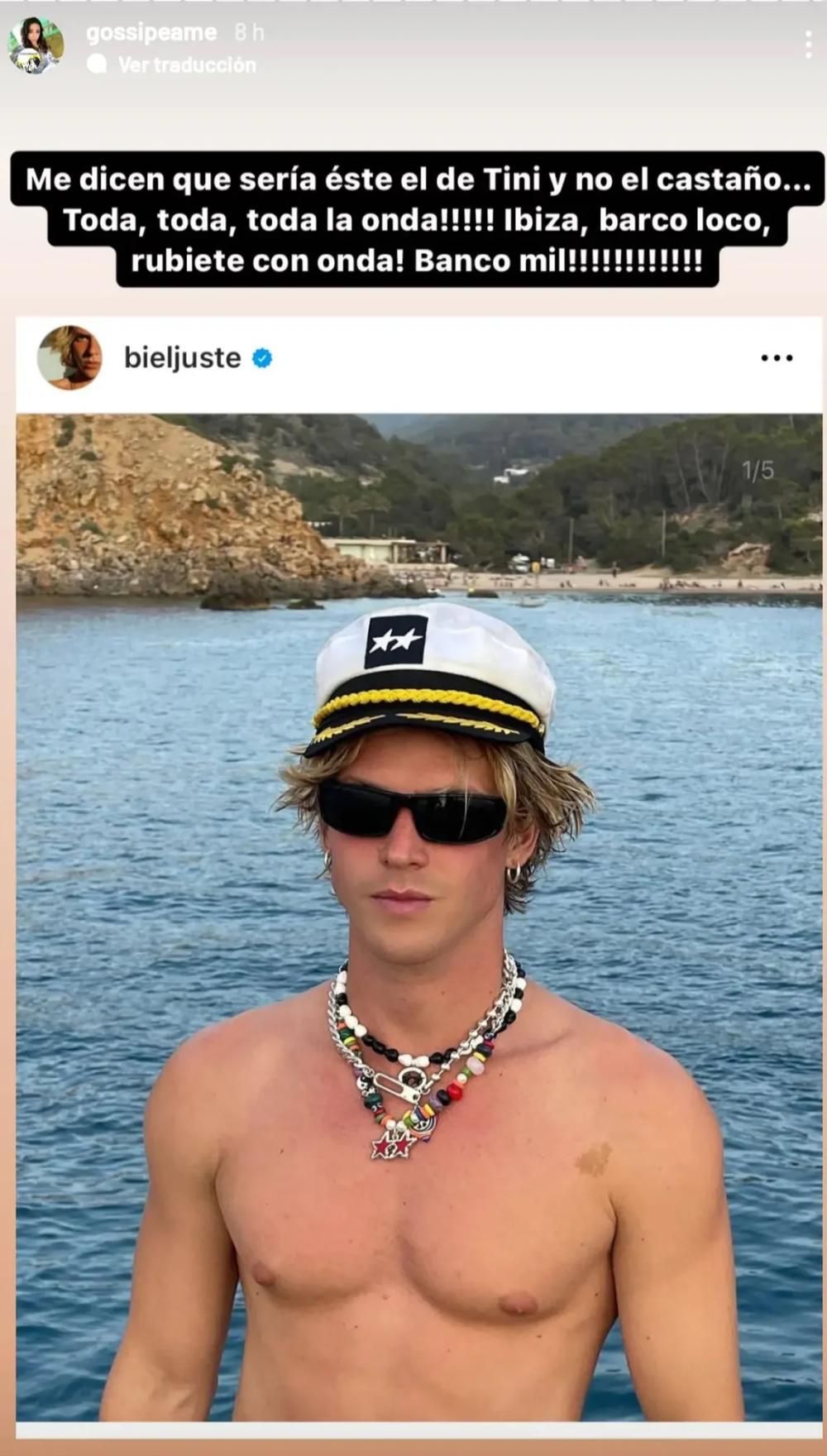 Según compartió Pochi de Gossipeame, Tini habría estado junto a Biel Juste durante su estadía en España. "¡Toda la onda! Ibiza, barco loco, un rubio con onda", comentó y mostró unas fotos.
