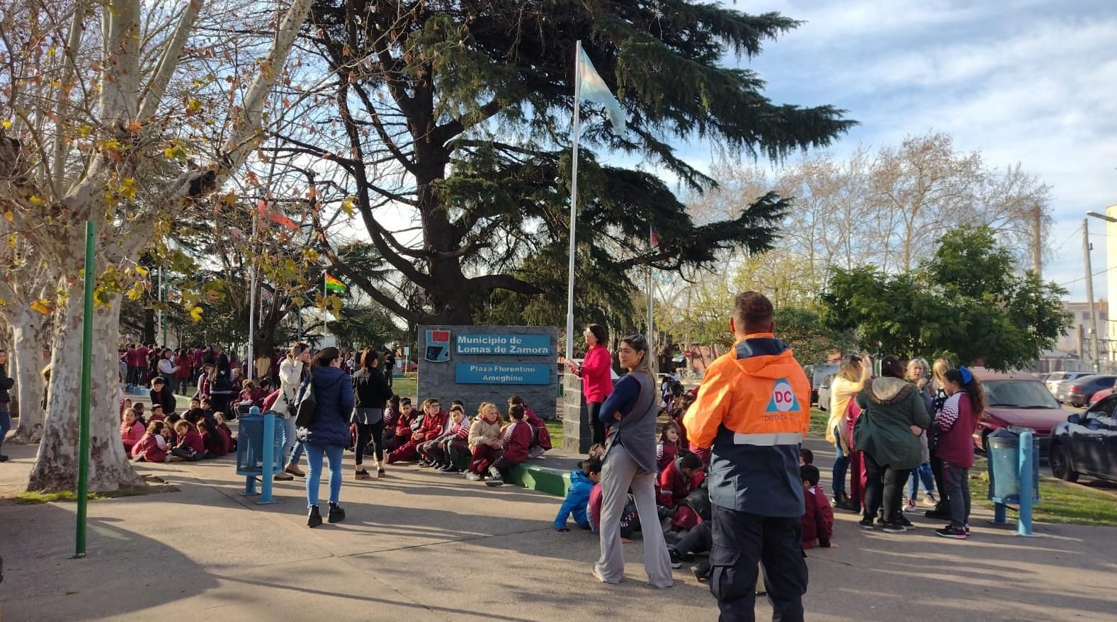 Las autoridades del colegio activaron rápidamente el protocolo de evacuación. Todos los estudiantes y docentes salieron del lugar y se ubicaron en la Plaza Florentino Ameghino, a una cuadra de la escuela.
