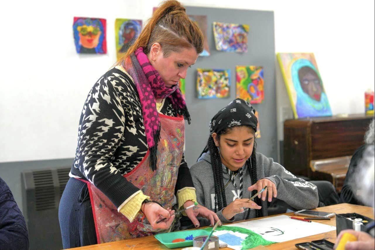 "En el taller trabajamos la imagen plástica con el lenguaje visual, los colores y las formas, tratando de estimular y desarrollar la creatividad que todas las personas tienen", expresó la artista y muralista Victoria Guggiari, quien está a cargo del taller de artes plásticas.