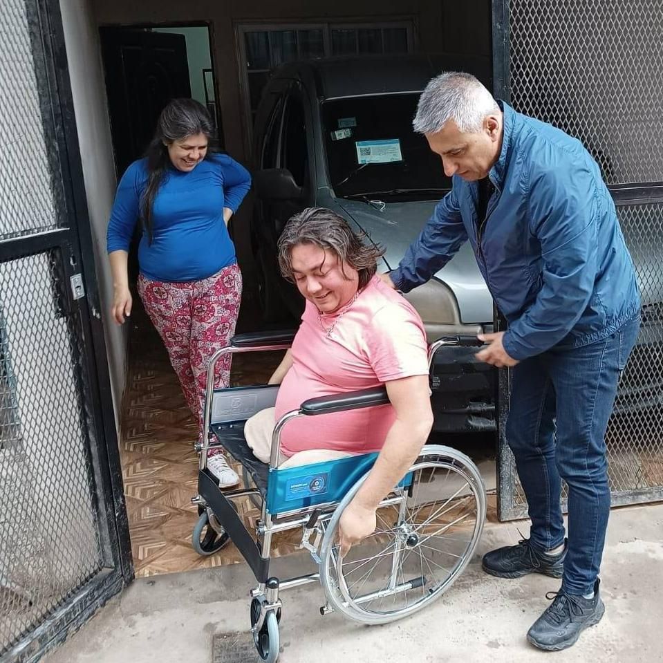 Desde la Fundación, nos comprometimos a conseguirle una silla de ruedas para que pueda trasladarse, ya que lo hacía con las manos en el piso