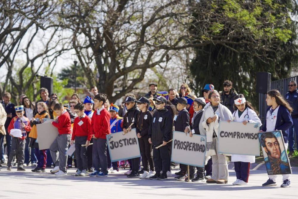 Inmediatamente, la Colegio Saavedra realizó un número artístico en donde actuaron sus alumnos y resaltaron distintos puntos de la vida de José de San Martín, como la libertad, la justicia, la educación y, por supuesto, las máximas a su hija Mercedes.