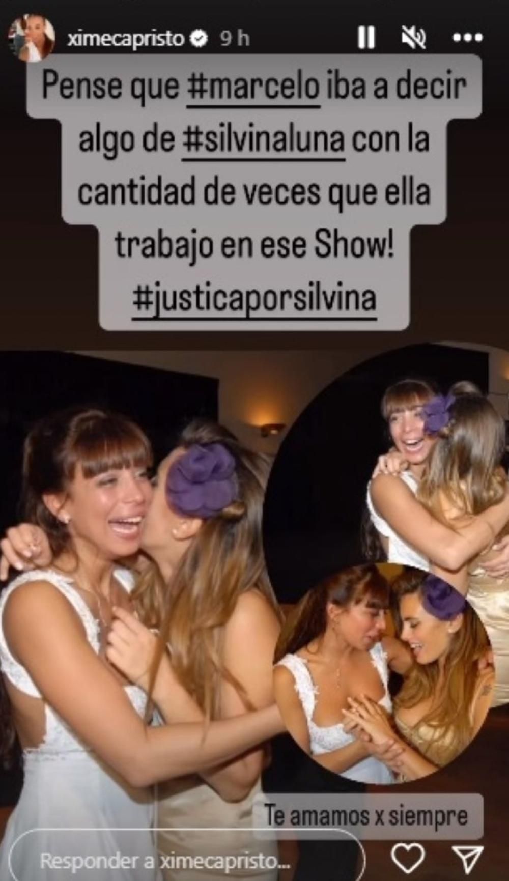 Indignada por el silencio de Tinelli, Capristo escribió: "Pensé que Marcelo iba a decir algo de Silvina con la cantidad de veces que ella trabajó en ese show. Justicia por Silvina. Te amamos para siempre".