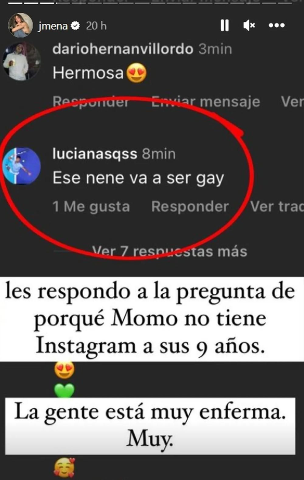 Jimena Barón reaccionó sin vueltas por un comentario fuera de lugar por parte de una de sus seguidoras en Instagram que opinó sobre la sexualidad de su hijo Momo, de apenas 9 años.