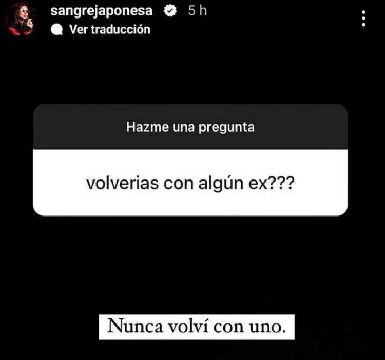Mediante su cuenta de Instagram, un usuario de la red social le consultó si regresaría con un ex y, sin dar vueltas, la cantante replicó: "Nunca volví con uno".