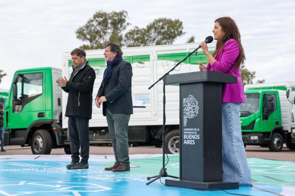 El acto fue encabezado por el gobernador bonaerense Axel Kicillof y la ministra de Ambiente Daniela Vilar en el marco del programa Mi Provincia Recicla. "Históricamente la problemática de los residuos se delegó a los municipios, pero por decisión política del gobernador estamos transformando el paradigma, aportando recursos desde el Estado provincial para toda la cadena de economía circular: educación ambiental para la separación en origen, camiones para la recolección diferenciada, equipamiento para plantas de reciclado y saneamiento de basurales a cielo abierto", destacó Vilar.