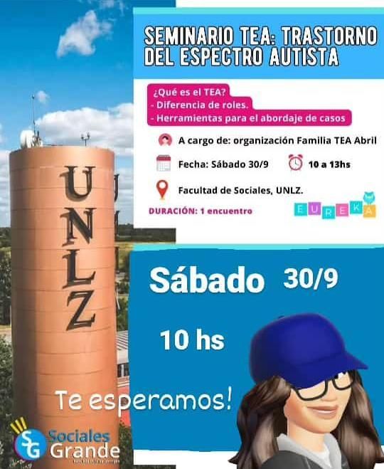 El seminario está organizado por Sociales Grande, un espacio estudiantil perteneciente a la Facultad de Ciencias Sociales de la Universidad Nacional de Lomas. Por tercer año consecutivo es que convocaron a Familia TEA Abril para que sean los encargados de realizar la charla, la cual está orientada a terapistas ocupacionales, psicopedagogos, trabajadores sociales y cualquier persona interesada en el tema.