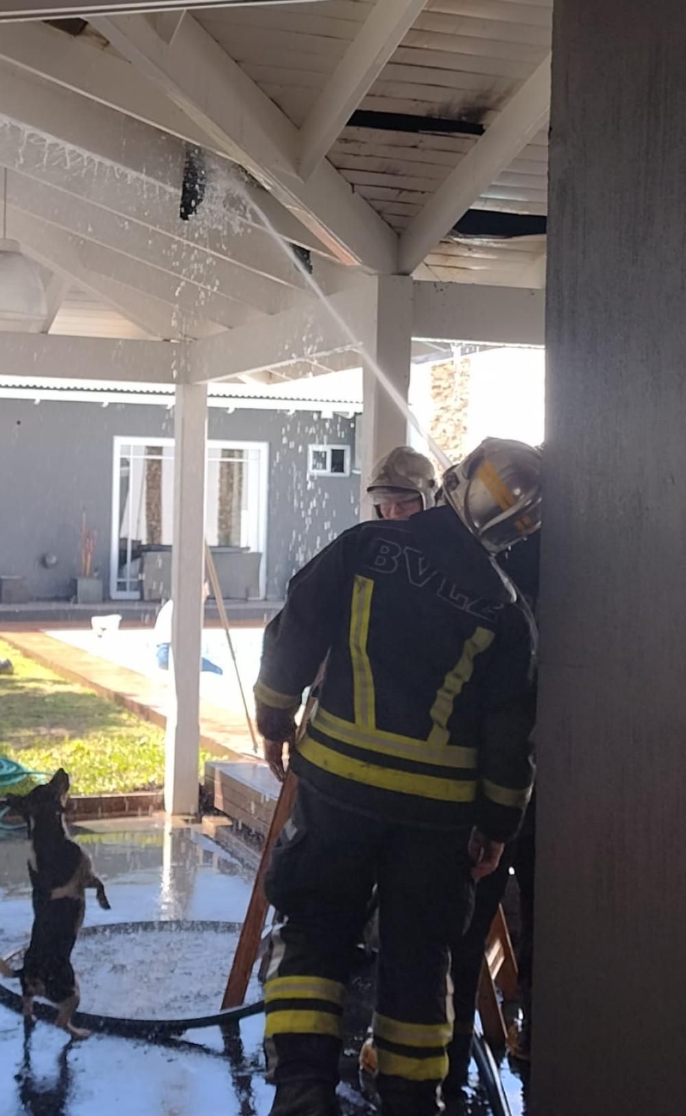 Según indicaron a este medio, el fuego se originó en una galería interna de la propiedad, cuando un trabajador colocaba un parche de membrana. A raíz de las llamas, se dañaron las maderas del cielorraso.