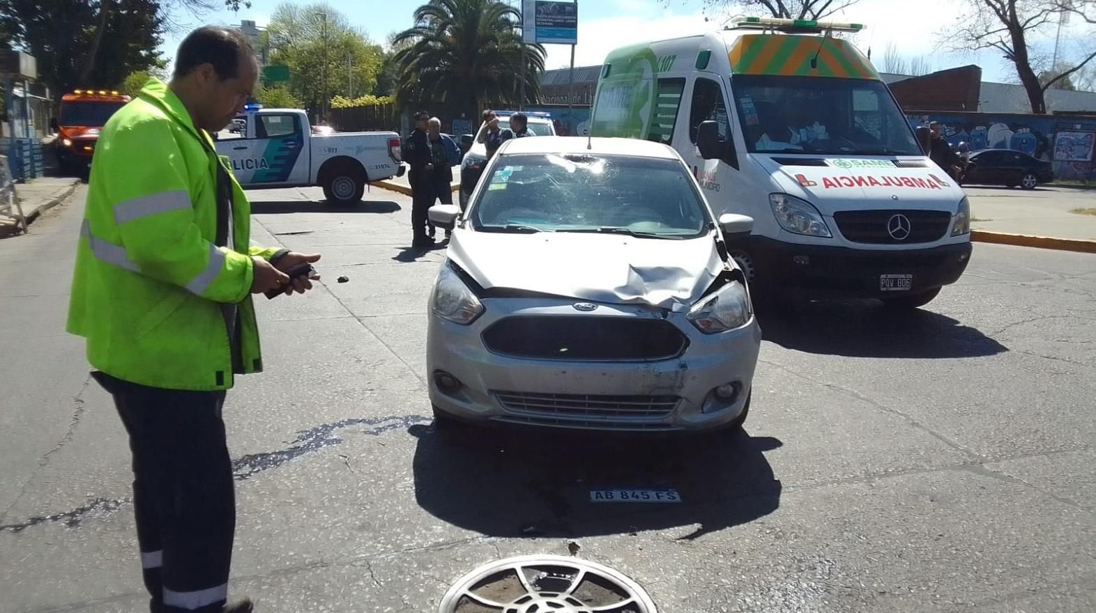 El auto involucrado fue un Ford Ka color gris, que sufrió el impacto de frente y terminó con el capot abollado y roturas en el vidrio y una de las luces. Por su parte, la moto salió despedida varios metros y su conductor quedó tirado sobre el asfalto.
