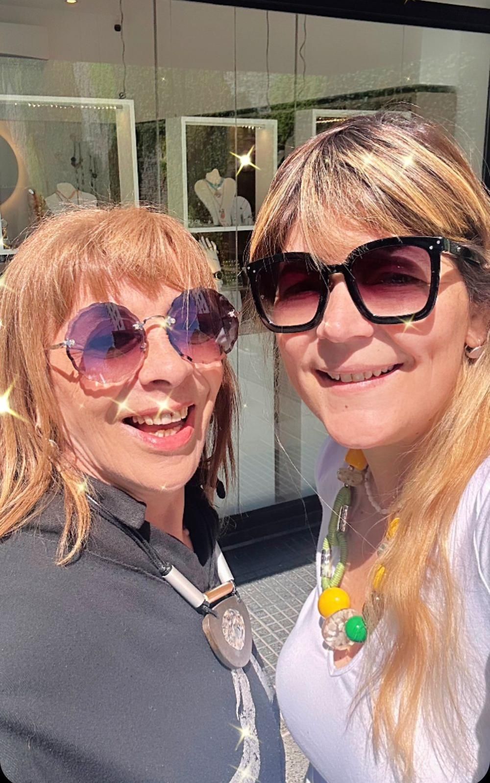 "En cuanto a las joyas, los accesorios de gran tamaño y con brillos, ya sea en anillos, pulseras, aros o colgantes, es lo que se va a usar durante los próximos meses", señaló Natalia, quien indicó que "con Marita somos un equipo y nos complementamos muy bien".