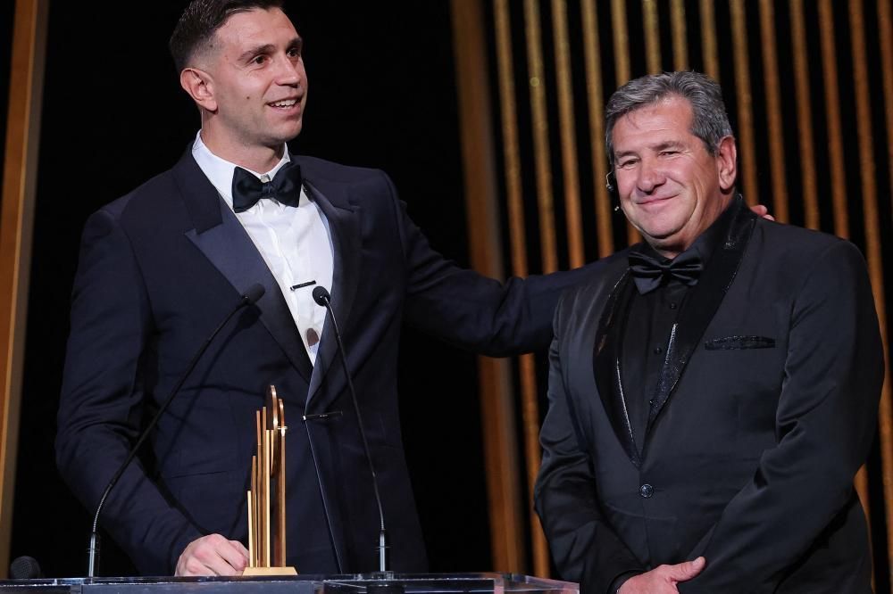 Al Dibu, el premio se lo dio su papá Alberto, quien apareció en escenario, muy emocionado. Tuvo un gran año en el Aston Villa de Inglaterra y conquistó de la Copa del Mundo en Qatar, una figura fundamental en los penales y en la atajada épica a Randal Kolo Muani en el último minuto contra Francia.