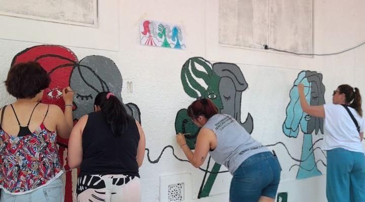 Según indicaron desde el Hospital Esteves, el mural tiene como tópicos la memoria y la identidad: en él se ven tres mujeres, cada una de ellas con los colores de los clubes participantes.
