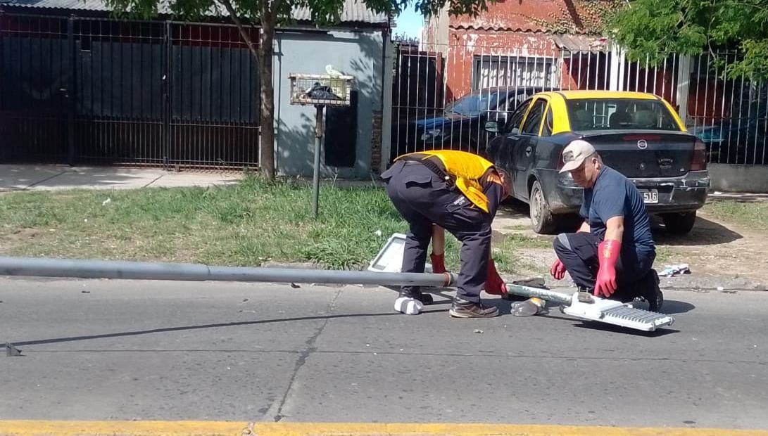 Una camioneta chocó contra un poste de luz y lo tiró abajo en el límite de las localidades de Villa Centenario y Remedios de Escalada.