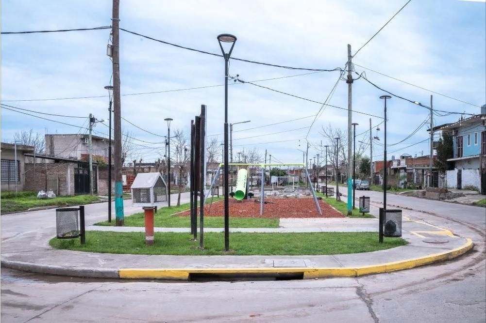 Otra de las iniciativas del plan de urbanización es puesta en valor de espacios públicos. En la Plaza Canadá, ubicada entre las calles Falucho y Lavardén, están construyendo un playón polideportivo, un área de descanso con mesas y bancos, y un sector de juegos infantiles para niños y niñas vinculados por senderos y veredas perimetrales.