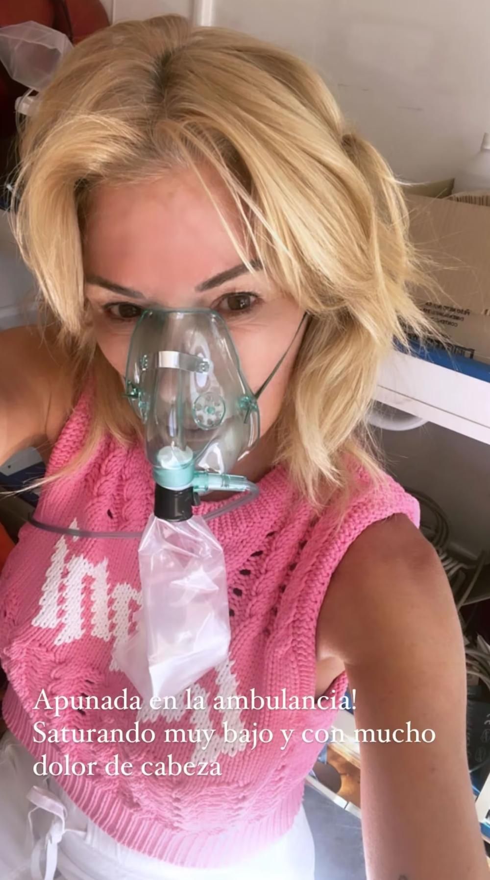 "Apunada en la ambulancia. Saturando muy bajo y con mucho dolor de cabeza", contó la esposa de Gambeta en una de las historias que hizo en Instagram, en la que se la ve con una mascarilla, recibiendo oxígeno.
