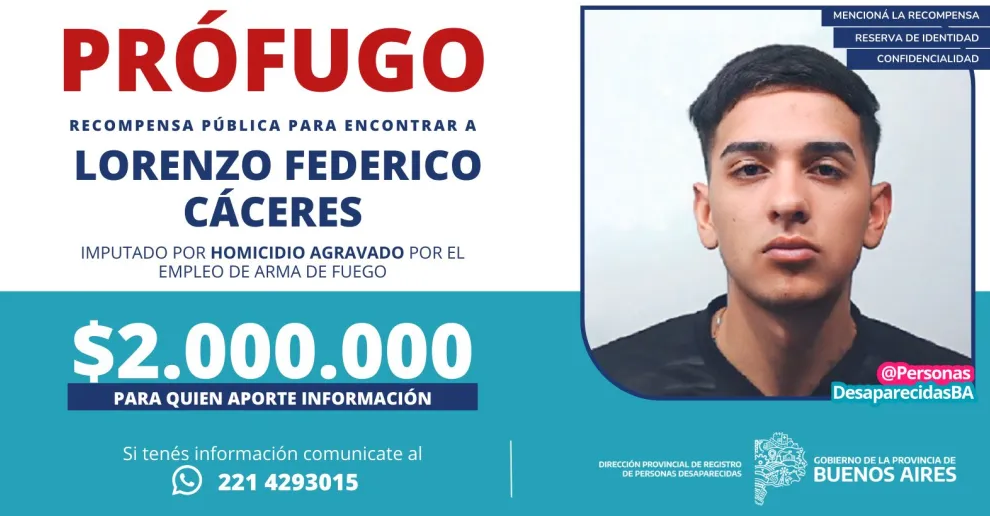 Por su parte, Páez, de 20 años, está acusado por "encubrimiento agravado". El Ministerio de Seguridad bonaerense ofrece una recompensa de 2 millones de pesos para quien aporte datos que permitan encontrarlos.