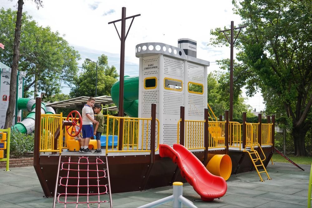 Los juegos de vanguardia y última generación sorprendieron a muchos de los chicos que fueron visitar la plaza junto a sus familias. Hay un barco que tiene redes trepadoras y toboganes para deslizarse, y dos mangrullos de estilo medieval con una torre, escaleras y toboganes de distintas alturas. Además pusieron una hamaca que se adapta a las necesidades de personas con movilidad reducida.