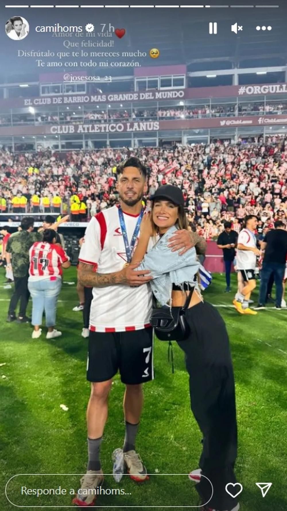 La modelo fue a alentar a su novio en la final de la Copa Argentina y luego le dedicó un romántico posteo en las redes sociales.