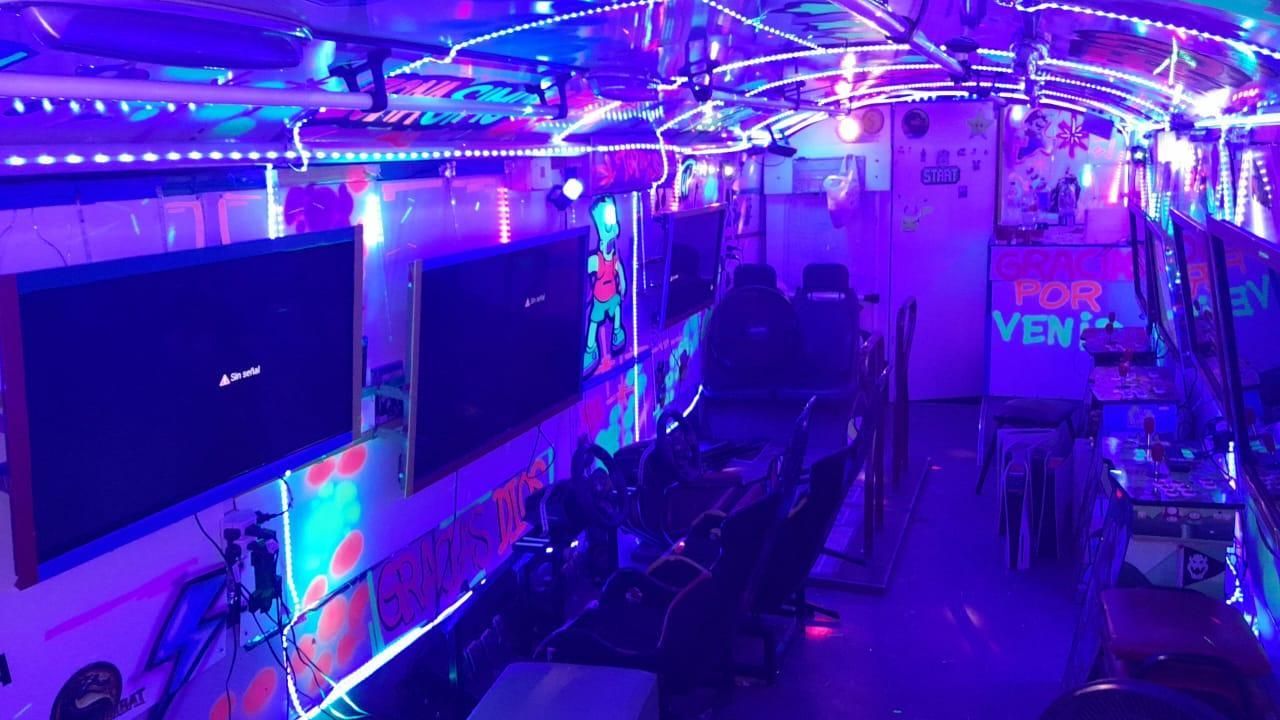 El colectivo está equipado con todas las comodidades para que, en simultáneo, 27 jugadores puedan disfrutar de las diferentes consolas y juegos que cuenta el ciber de cuatro ruedas.