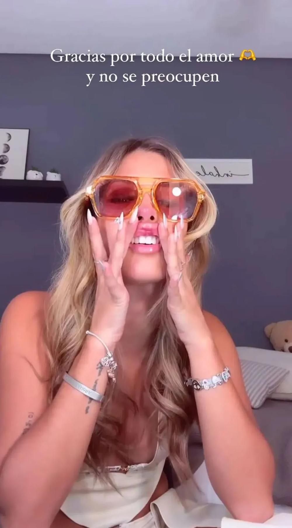 "Hola, ¿cómo andan? Aparezco para agradecer todos los mensajitos que me mandaron y para que se queden tranquilos porque hay muchas personas que están diciendo cosas que no son, a la gente le gusta hablar al p...", agregó Julieta, que usó unos lentes con marco naranja para tapar algunas de las lesiones.