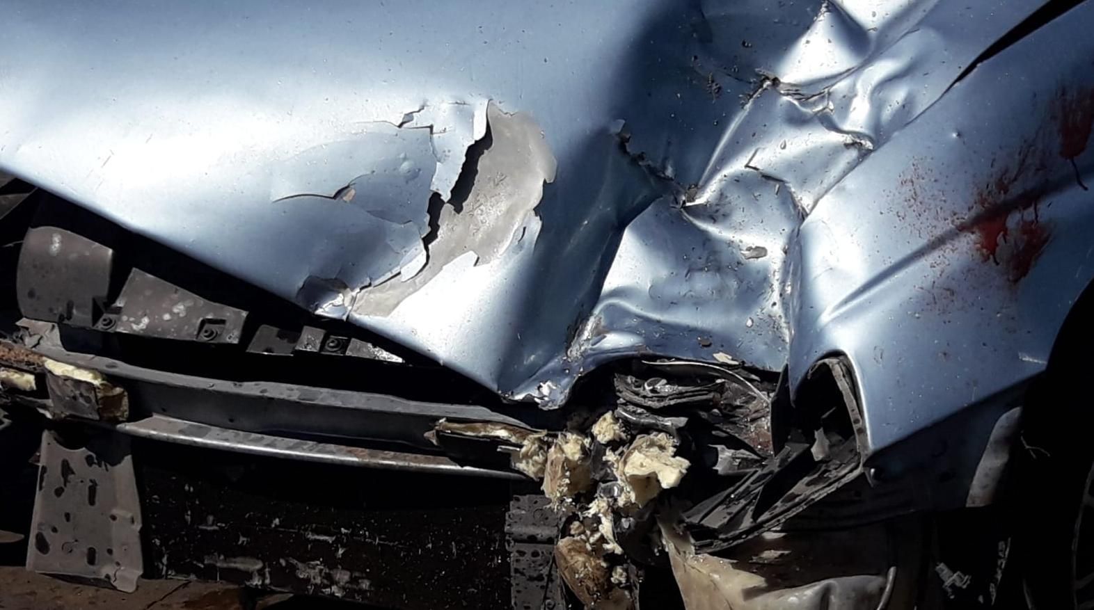 Los vidrios rotos del auto, el capot destrozado y las manchas de sangre, fueron la postal que mostró la magnitud del impacto.